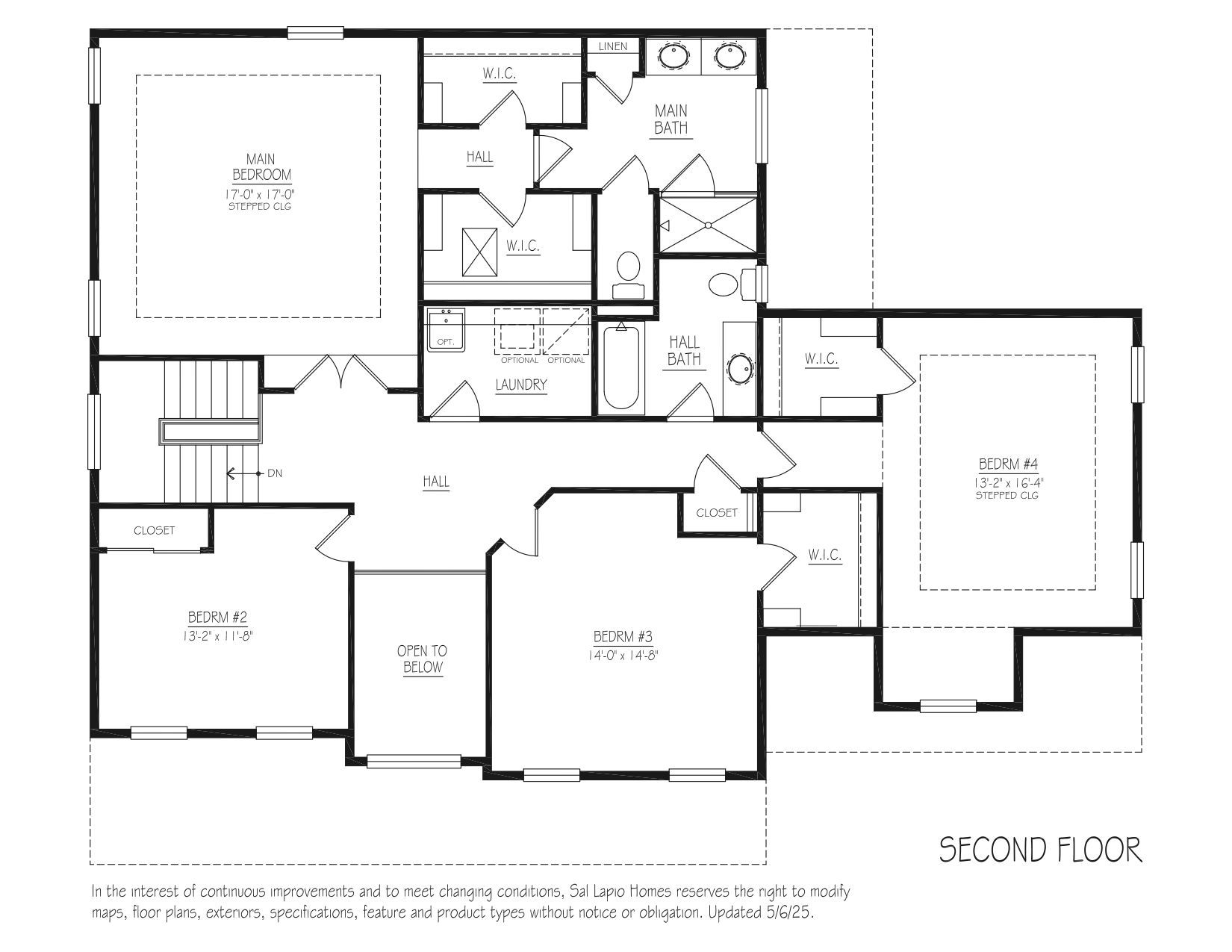New Haven Grand model, a truly open-concept layout that caters to today’s modern lifestyle. Step inside to a dramatic two-story foyer, flanked by a formal living room and dining room. The spacious family room with an abundance of windows, is the perfect space for relaxation and gathering. A triple patio door with transom windows leads to the backyard, filling the space with natural light. At the heart of the home lies a chef’s kitchen, featuring a center island, stainless steel appliances including a 5-burner gas cooktop with exposed hood. The walk-in pantry offers ample storage, while the adjoining breakfast area provides plenty of room for casual dining.